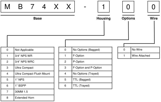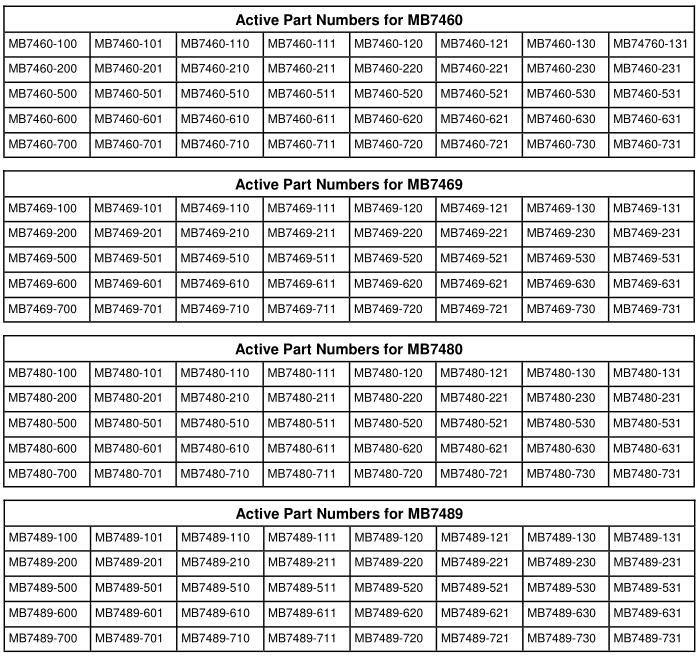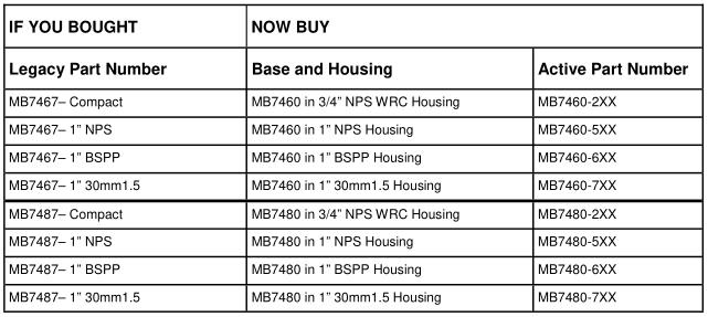 The legacy part numbers MB7467 and MB7487 are now contained within MB7460 and MB7480 which are the base for all housing options on these products. To select a product with a legacy part number, select the desired housing option on the product with the appropriate base. Please review the following table for more information.