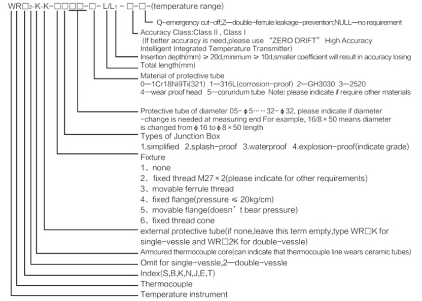 WR_KK series assembled armored thermocouple (armored thermocouple core inside, protective tube outside)