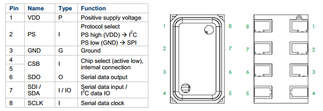 MS5607-02BA03 Barometric Pressure Sensor Pin Configuration