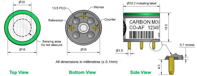 CO-AF Carbon Monoxide Sensor (CO Sensor) sizes: