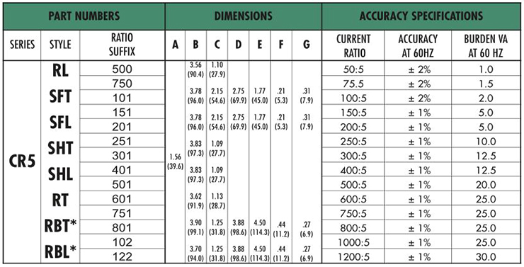 The commercial class transformers are lower cost and well-suited for current monitoring applications.
