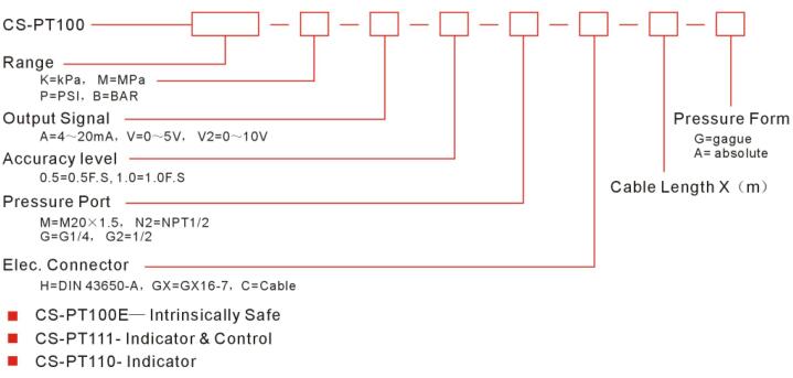CS-PT100 Series Pressure Transmitter Type Selection Guide