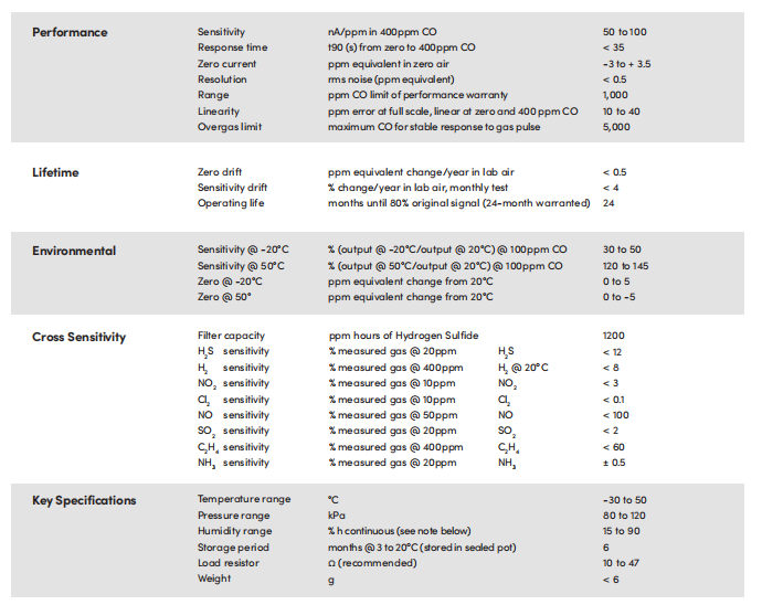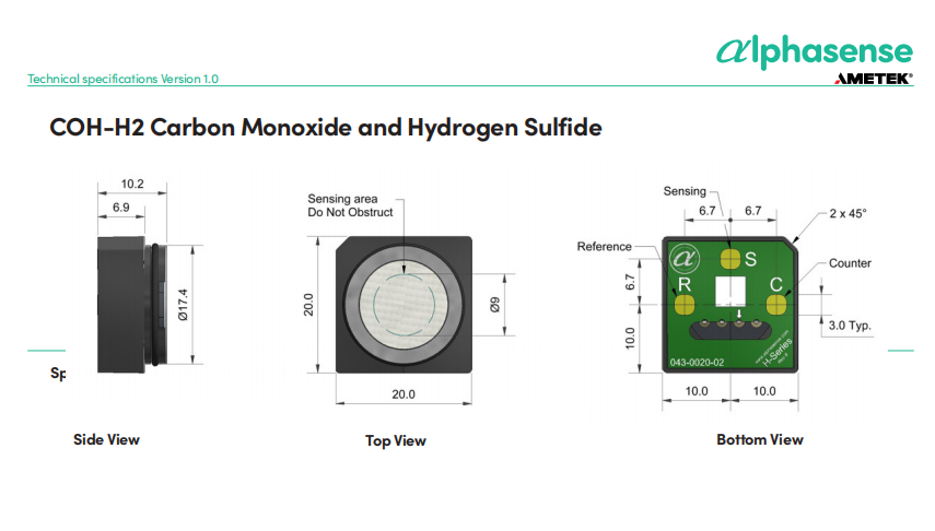 Electrochemical Dual air CO H2S sensor miniature H series COH-H2 specification: