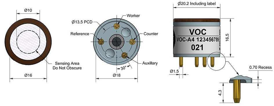 VOC-A4 Electrochemical VOC sensor Schematic Diagram