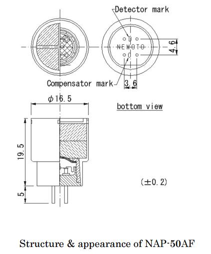 NAP-50AF sensor is newly developed for the application in bad conditions. This sensor is with charcoal filter on NAP-50A sensor. The actual sensitivity is around 10% lower than NAP-50A, but the resistivity to noise gases like silicone compound vapor is quite more excellent than NAP-50A.