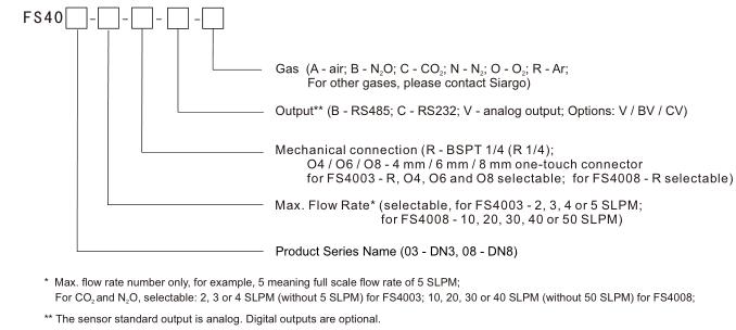 FS4008 Gas Mass Flow Sensor Features and Applications