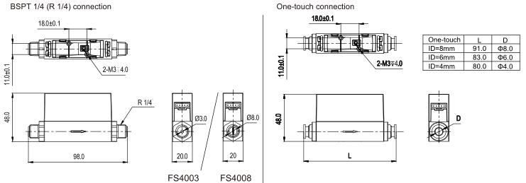FS4008 Gas Mass Flow Sensor Mechanical Dimensions