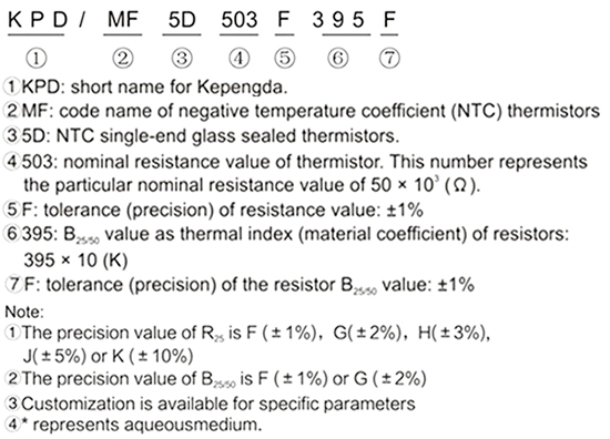 MF5D Glass-sealed NTC Thermistor Series Description of Product Types and Specifications
