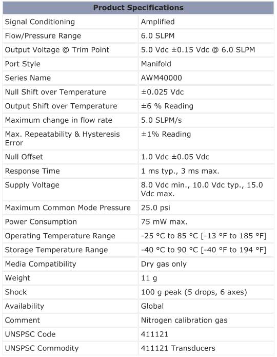 Honeywell Air flow Sensors - AWM43600V Product Specifications