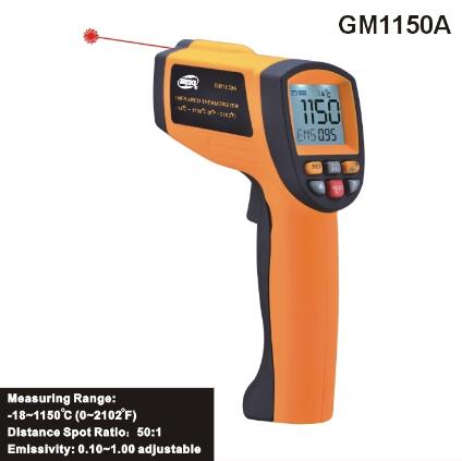 This GM1150A infrared thermometer is used for measuring the temperature of the object's surface, which is applicable for various hot, hazardous or hard-toreach objects without contact safely and quickly.