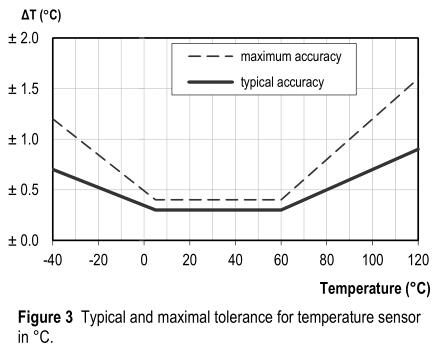 The SHT2x sensors contain a capacitive type humidity sensor, a band gap temperature sensor and specialized analog and digital integrated circuit – all on a single CMOSens ? chip. This yields in an unmatched sensor performance in terms of accuracy and stability as well as minimal power consumption.