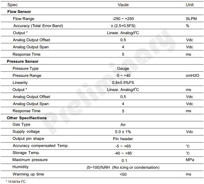 FS6122 series mass flow sensors are specially designed for personal ventilators for CPAP (continuous positive airway pressure). The sensor integrates MEMS mass flow sensor with a MEMS pressure the necessary information for the poper performance of the state-of-art CPAP ventilators. The miniature package not only provide space saving for the ventilator but also provides high accuracy and fast response for both mass flowrate measurement and gauge pressure data while with a very low pressure drop and small dead space.