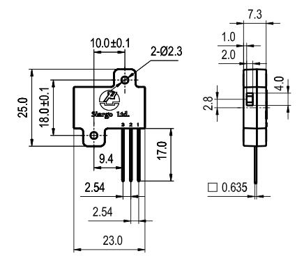 3 Pin, 2.54 mm centers, 0.635 mm square