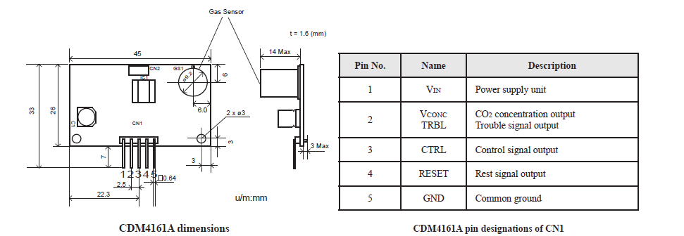 VCONC=CO2 conc/1000 (0.4~4.0V DC) |