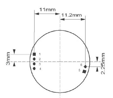 This shows the position of the connectors looking from above the sensor. ie this is the corrcet pattern for a mating PCB.