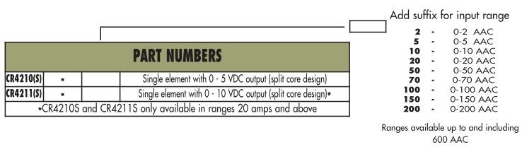 CR4210S Self Powered AC Current Transducer PART NUMBERS