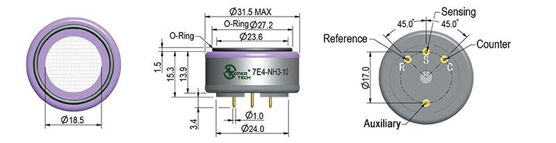 This 4-electrode sensor is designed for air quality monitoring to measure the low-concentration NH3 gas with ultra-high resolutions.