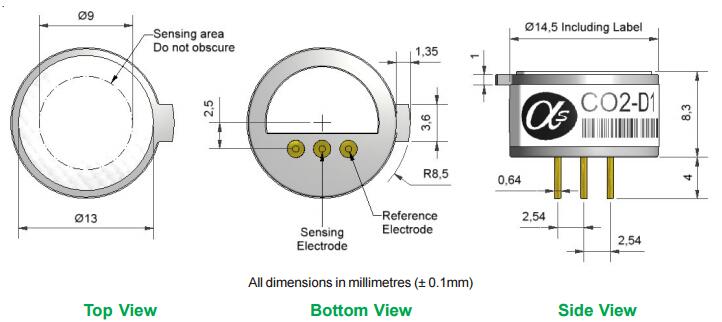 CO2-D1 Carbon Dioxide Sensor (CO2 Sensor) Schematic Diagram