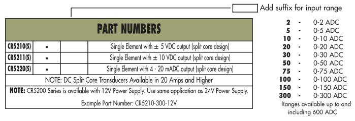 CR5211S?Split Core Current Transducers?PART NUMBERS