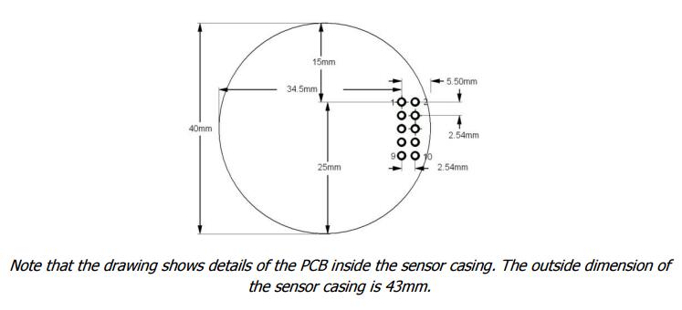 COZIR-A NDIR CO2 Gas Sensor Dimensions and Wiring Connections
