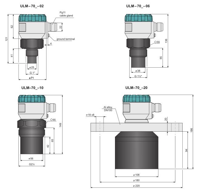 ULM-70 Ultrasonic Level Meters Dimensional drawings