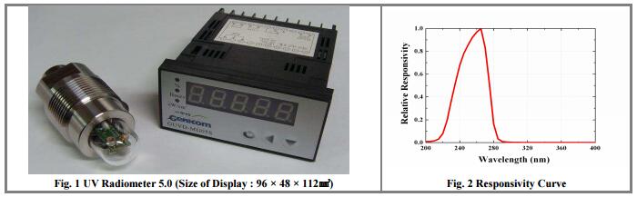 UV Radiometer 5 can check the absolute power, relative power, and accumulative time.There are 3 output like DC Voltage, Current, and Relay output to UV Radiometer 5.